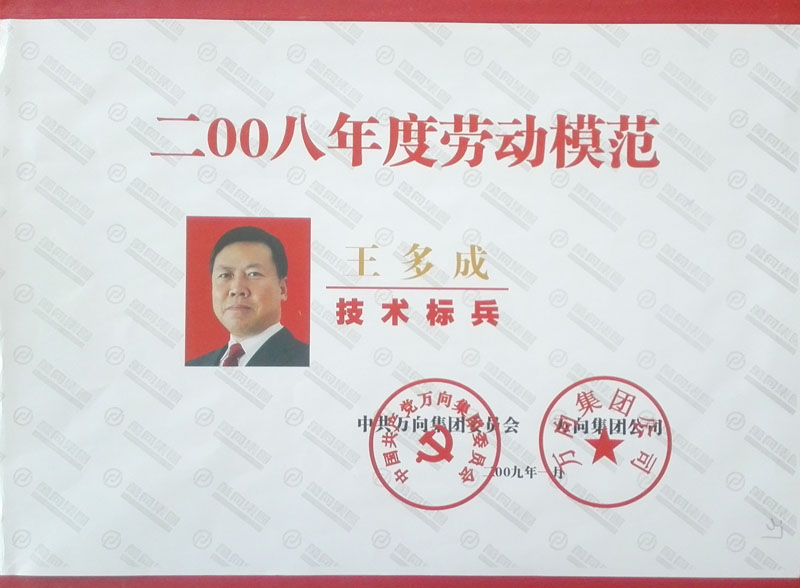 | 榮獲2008年度萬(wàn)向集團(tuán)勞動(dòng)模范證書 | ||