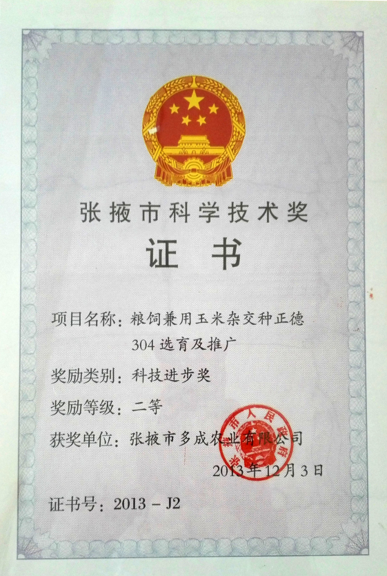 | 糧飼兼用玉米雜交種正德304選育及推廣——張掖市科學(xué)技術(shù)進(jìn)步獎二等獎 | ||