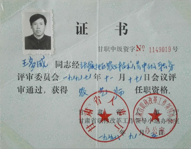 農(nóng)藝師合格證書(shū)